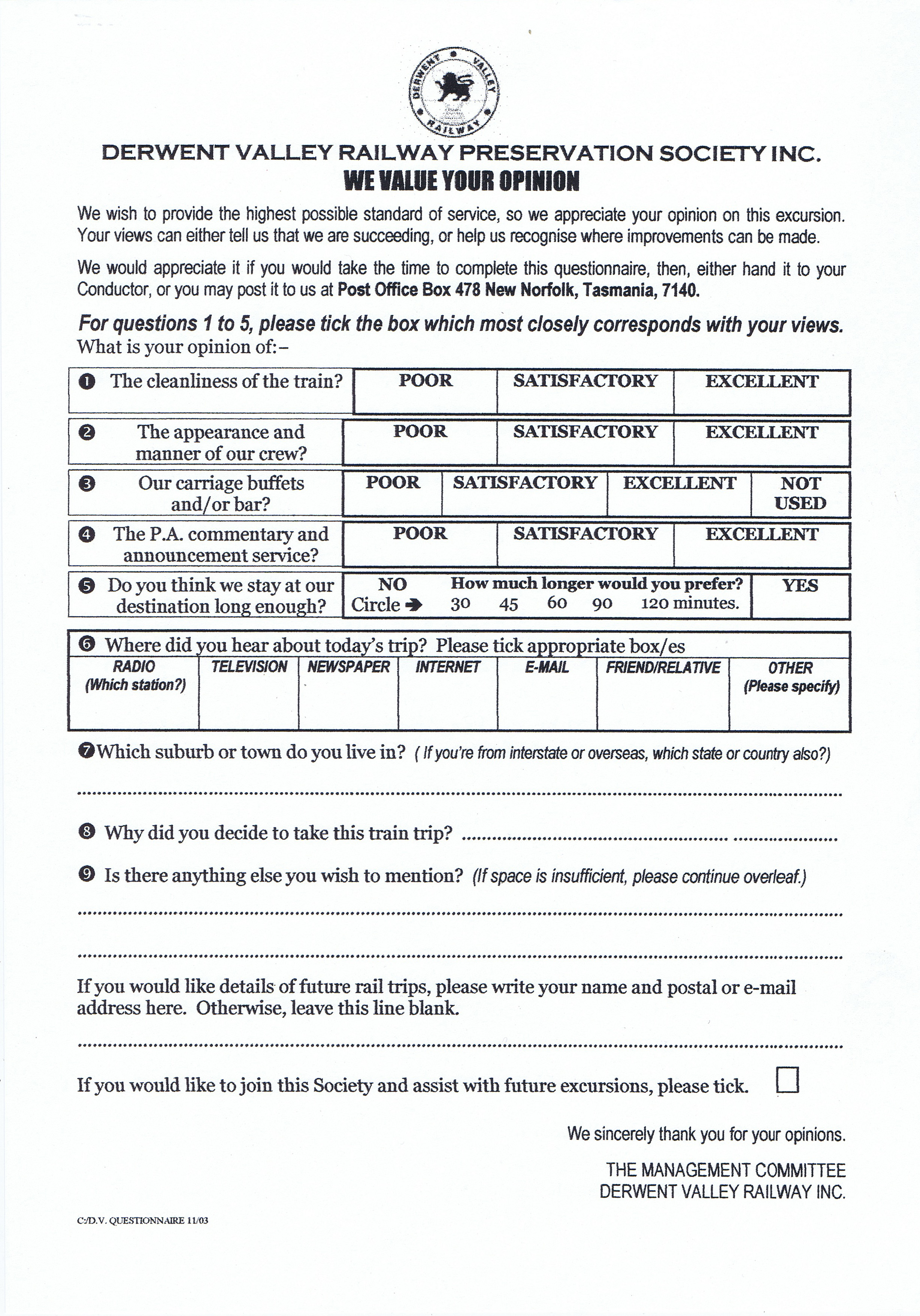 DVR onboard survey from Dennis Hewitt