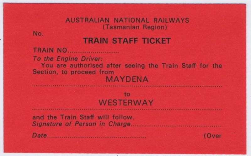 Staff Ticket Maydena to Westerway from Leslie Chandler