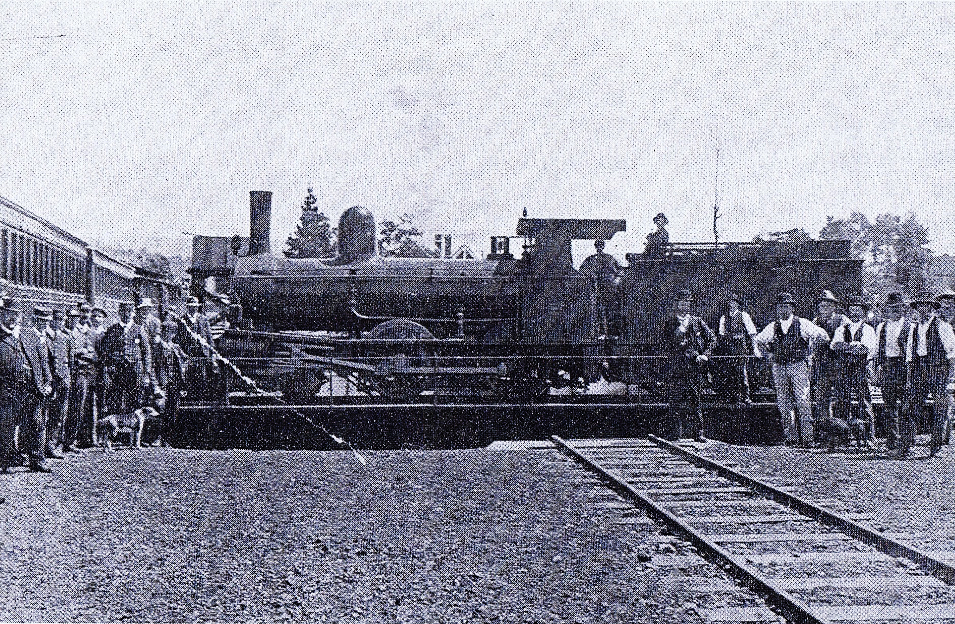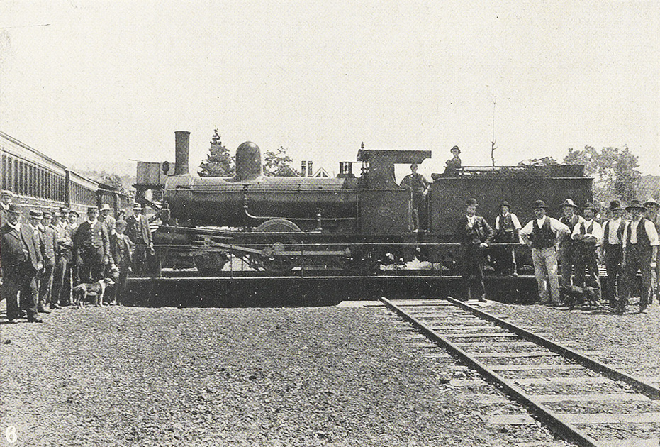 1910 on the turntable at New Norfolk. This was the turntable from Glenora that later went to be a road bridge at Karanja. Photo by W. Synott. Image from the Weekly Courier, Thursday January 26, 1911.