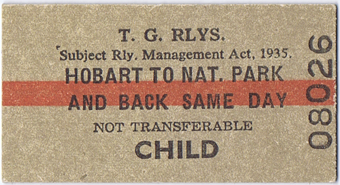 Ticket: Hobart to National park - front