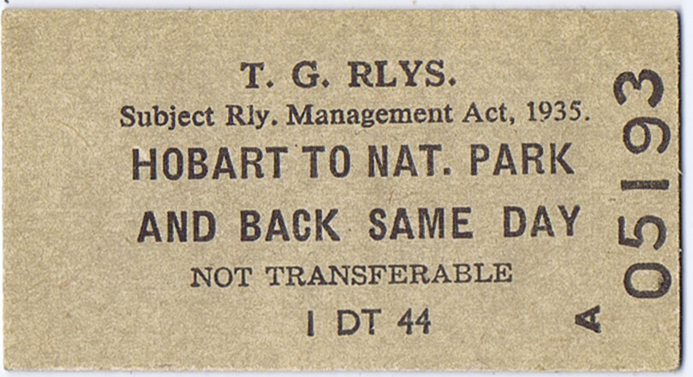 Ticket: Hobart to National Park - front