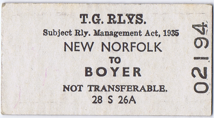 Ticket: New Norfolk to Boyer - front