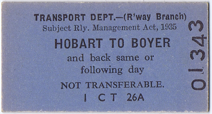 Ticket: Hobart to Boyer - front